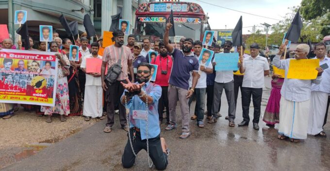 Byraam raamFebruary 22, 2026 Continue Readingஇலங்கை இராணுவத்தினாரால் கைது செய்யப்பட்டு காணாமல் ஆக்கப்பட்ட வடமராட்சி – கரவெட்டியை சேர்ந்த ஊடகவியலாளரும் ஆசிரியருமான சுப்பிரமணியம் இராமச்சந்திரனுக்கு நீதி கோரி பருத்தித்துறையில் நேற்று கவனயீர்ப்பு போராட்டம் முன்னெடுக்கப்பட்டது. யாழ்...