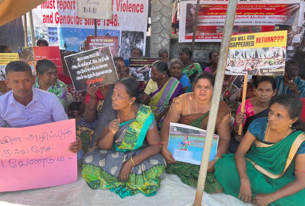 வடக்கு – கிழக்கு வலிந்து காணாமல் ஆக்கப்பட்ட உறவுகளின் சங்கத்தினரால் இலங்கையின் உள்நாட்டு பொறிமுறையை நிராகரிக்கின்றோம், தமிழின அழிப்பு,வலிந்து காணாமல் ஆக்கப்படுதல், போர்க் குற்றங்கள் மற்றும் மனிதப் புதைகுழிகள் குறித்து நாம் சர்வதேச சுயாதீன விசாரணையை மட்டுமே கோருகின்றோம் எனும் தொனிப் பொருளுடன் இந்தப் போராட்டம் முன்னெடுக்கப்பட்டு வருகின்றது.