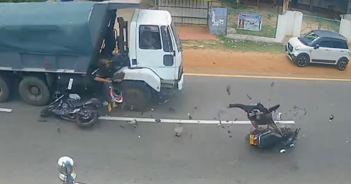 சாவகச்சேரியில் இருந்து யாழ்ப்பாணம் நோக்கி பயணித்த டிப்பரை, அதே திசையில் மோட்டார் சைக்கிளில் சென்ற பெண் முந்திச் செல்ல முற்பட்டபோது எதிர்த் திசையாக யாழ்ப்பாணத்தில் இருந்து சாவகச்சேரி நோக்கி பயணித்த இளைஞர் செலுத்திய மோட்டார் சைக்கிளுடன் நேருக்கு நேர் மோதி விபத்து சம்பவித்துள்ளது.