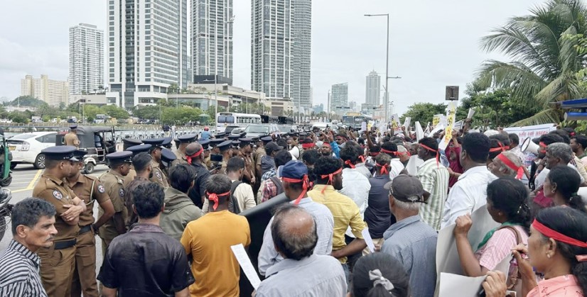 Home தாயகச் செய்திகள் ஜனாதிபதி செயலகம் முன்பாக மன்னார் மக்கள் நூற்றுக்கணக்கில் திரண்டு போராட்டம்!
