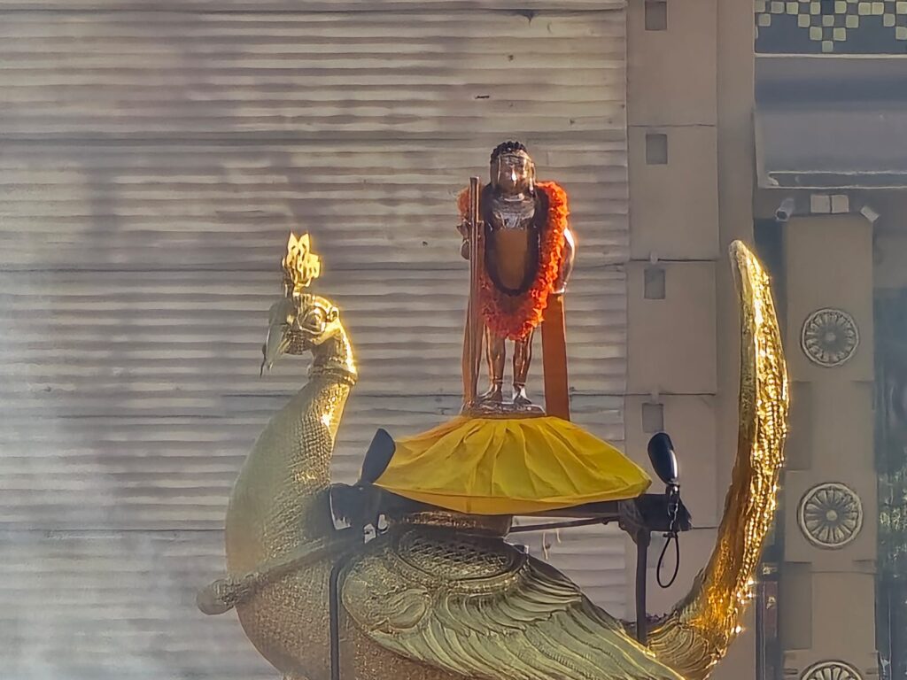 காலை 6.45 மணியளவில் நடைபெற்ற வசந்த மண்டபப் பூஜையைத் தொடர்ந்து பிள்ளையாரும் முருகப் பெருமானும் வெளிவீதியுலா வந்தனர்.