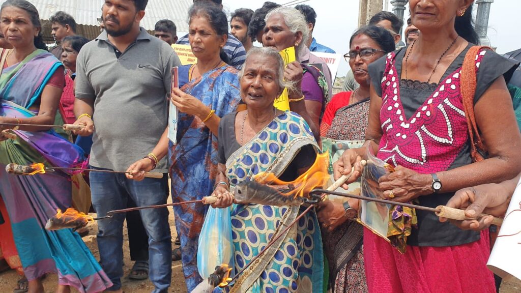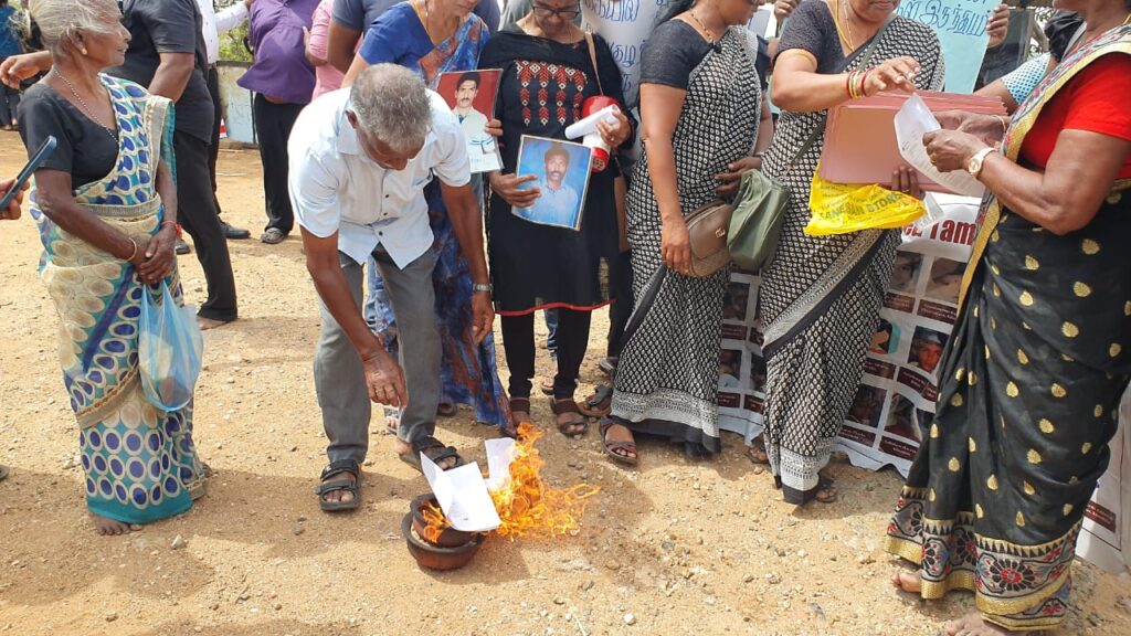 போராட்டத்தின் இறுதி நாளான இன்று மதியம் ஒரு மணியளவில் கவனவீர்ப்புப் போராட்டத்தை முன்னெடுத்த போராட்டக்காரர்கள், தீப்பந்தங்களையும் ஏந்தியிருந்தனர்.