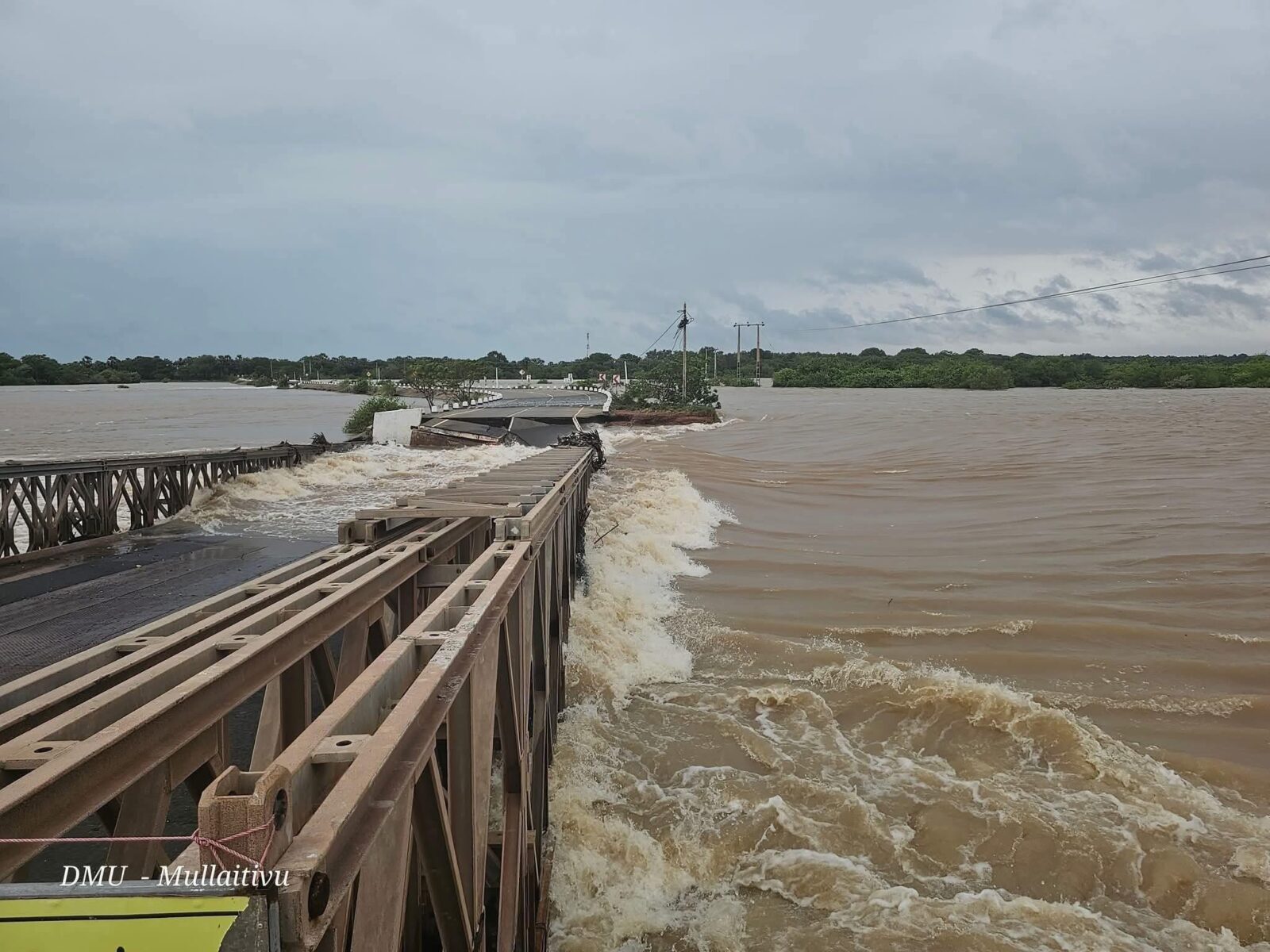 நாயாறு பாலம் உடைந்தமையால் போக்குவரத்து தடைப்பட்டுள்ளது. வட்டுவாகல் பாலம் சேதமடைந்துள்ளமையால் போக்குவரத்து தடைப்பட்டுள்ளது.