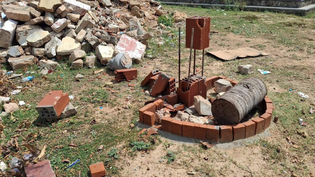 அந்த நினைவுத் தூபியை விஷமிகள் அடித்து உடைத்துள்ளனர்.