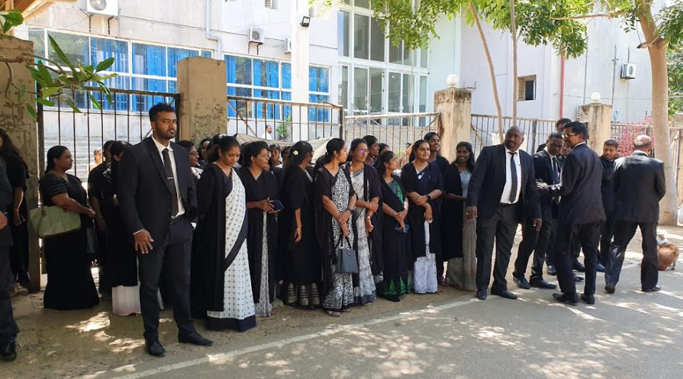 யாழ்ப்பாணம் நீதிமன்ற வளாத்தில் இடம்பெற்ற இந்த போராட்டத்தில், யாழ்ப்பாணம், கிளிநொச்சி, முல்லைத்தீவு, மன்னார், வவுனியா உள்ளிட்ட மாவட்டங்களைச் சேர்ந்த சட்டத்தரணிகள் இந்தப் போராட்டத்தில் பங்கெடுத்துள்ளனர்.