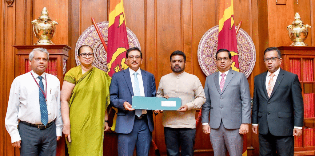 இலங்கை மத்திய வங்கியின் 75 ஆவது ஆண்டு நிறைவைக் குறிக்கும் வகையில் வெளியிடப்பட்ட 2000 ரூபா புதிய நினைவு நாணயத்தாள், மத்திய வங்கியின் ஆளுநர் கலாநிதி நந்தலால் வீரசிங்கவினால் நேற்று ஜனாதிபதி அலுவலகத்தில் ஜனாதிபதி அநுரகுமார திஸாநாயக்கவிடம் கையளிக்கப்பட்டது.